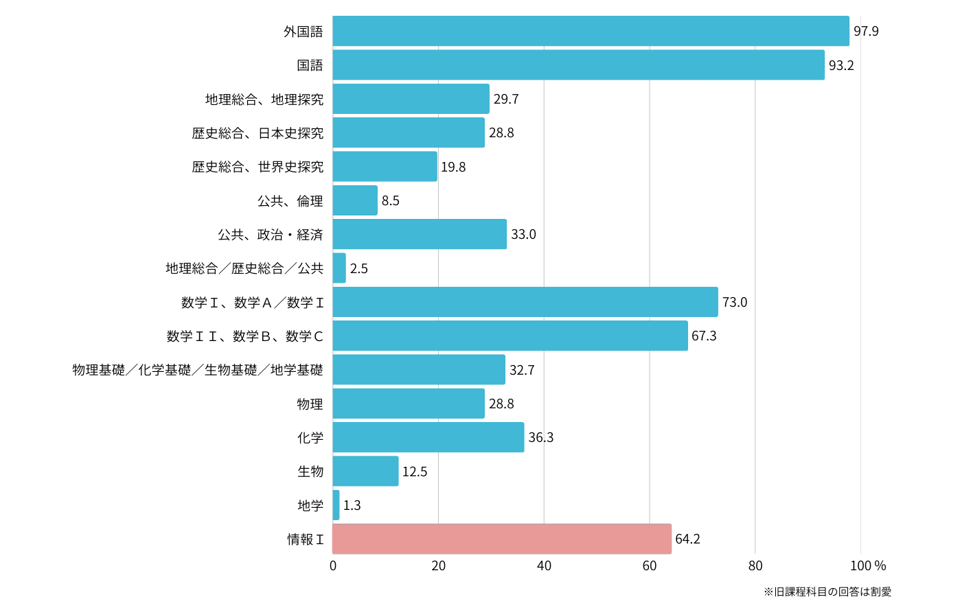 「新課程入試初年度」となった2025年度共通テストで初めて出題された「情報 I」について、「受験した」は64.2%。本調査の回答者の過半数が、「情報 I」を含む形で共通テストを受験したという結果になりました。なお、2025年度大学入学共通テストの実施結果(本試験)での「情報 I」の受験率は60.6%でした。(本試験受験者:461,505名、「情報 I」受験者:279,718名)(※)