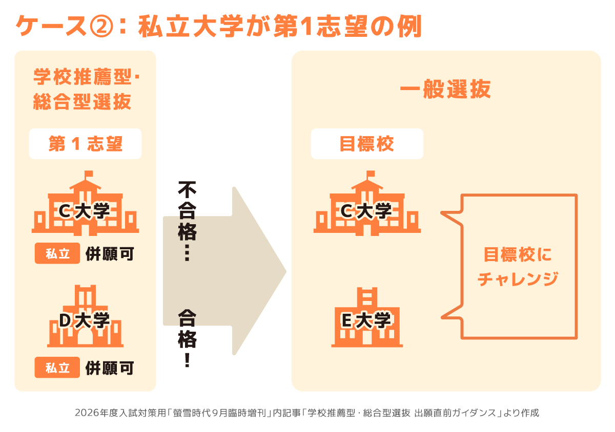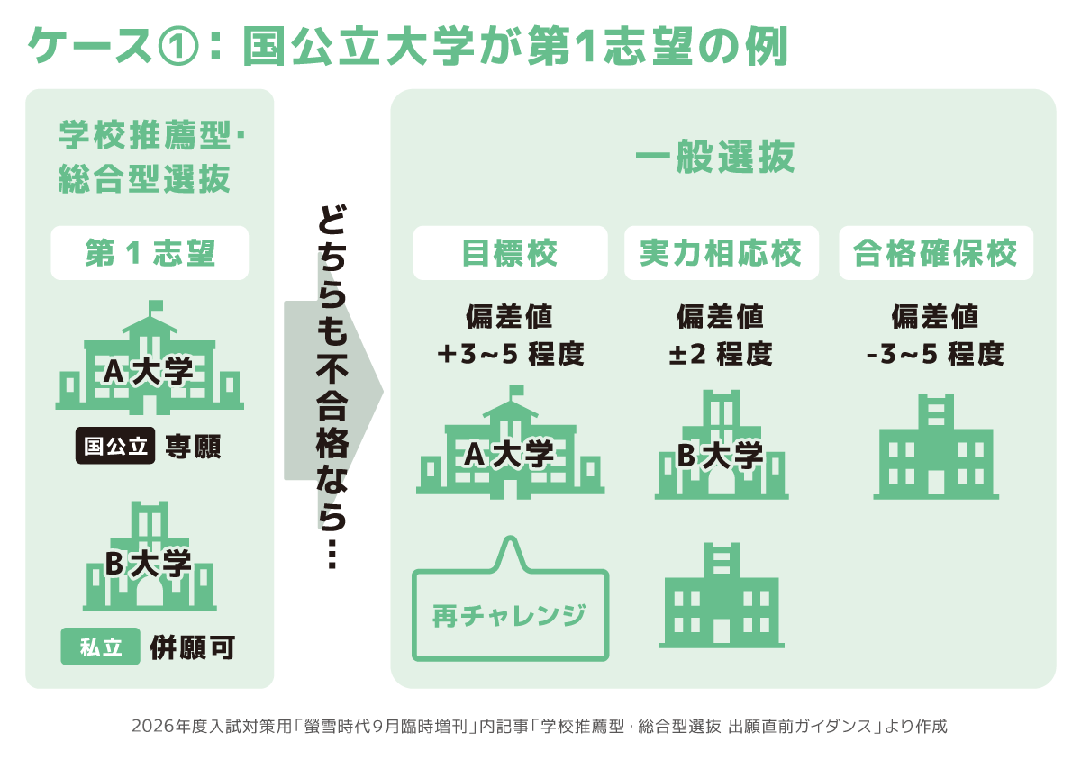 第1志望が国公立大・私立大の2つの併願ケースの例を見ながら解説します。