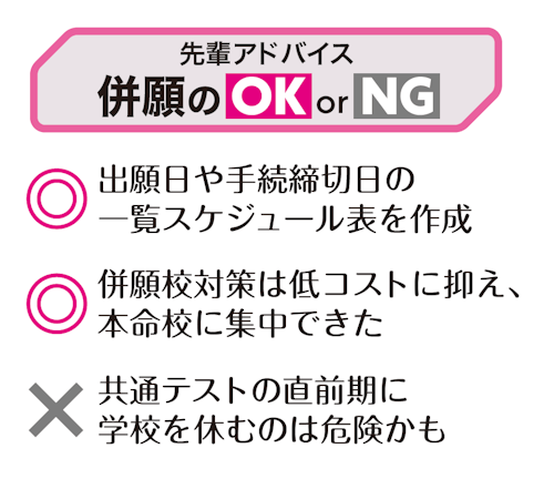 併願は単なる“滑り止め”ではなく、本命校合格につながるようプランニングすることが大事!選考基準や受験日程、各受験校の試験対策をどのように並行したのかなど、先輩たちの併願体験記をご紹介!