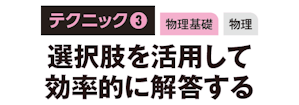まず単位に着目したり現象から考えたりして不適切な選択肢を消し、残った選択肢から正解につながるポイントを把握する。また、選択肢から「用いる文字は?」「どこまで計算するか?」など情報を得て、効率よく解答しよう。