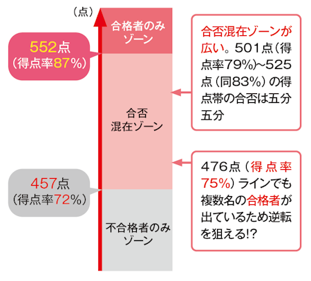前年の共通テスト得点における合否状況(635点満点換算)