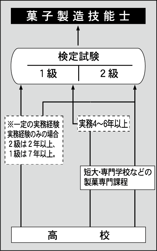 菓子製造技能士は、国が行っている「技能検定」によって得られる資格の一つである。